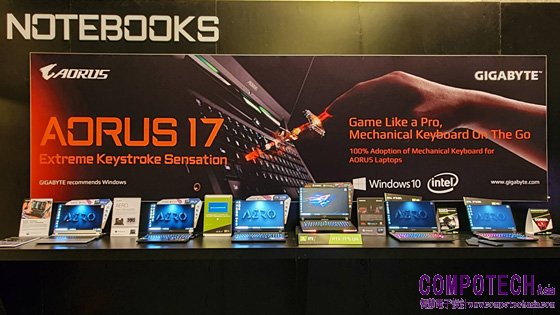 技嘉首次於CES 消費性電子展展出AORUS旗下最新的旗艦電競機種AORUS 17。AORUS 17領先業界搭載了歐姆龍機械軸的機械鍵盤,能夠提供玩家頂級的鍵盤敲擊手感和絢爛的鍵盤燈光效果。不僅如此,AORUS 17更支援了Intel八核心可超頻處理器和NVIDIA RTX圖形顯示晶片,具備RTX系列筆電中的最高效能,讓玩家爽快暢玩遊戲大作。為了打造最頂級的電競體驗,AORUS 17更獨家採用了ESS SABRE DAC音效晶片和240Hz超高速螢幕,讓玩家在遊戲中的視覺、聽覺和觸覺體驗臻至巔峰。