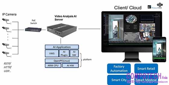 此款微型高效的 Edge-AI 伺服器非常適合即時的邊緣運算,如使用源數據(含偵測物體、人物、商品、人臉和路徑)分辨和過濾影像輸入。適合應用的層面則包含智慧零售、智慧製造、監控、醫療 AI 等。