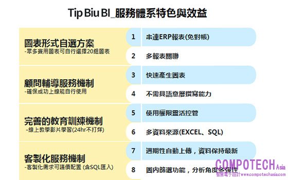 一套敏捷BI的數據處理、分析效率主要體現在哪些方面?以鼎新服務雲研發的敏捷BI產品「Tip Biu BI」為例,其主要具備以下幾個優勢