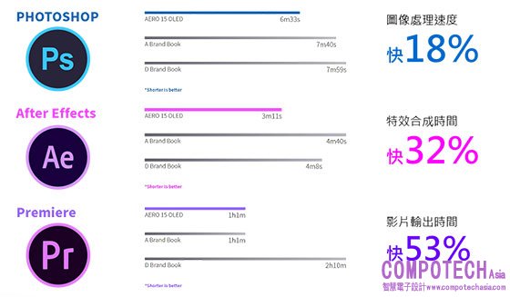 圖說:AERO 15 OLED ADOBE 相關軟體效能表現。