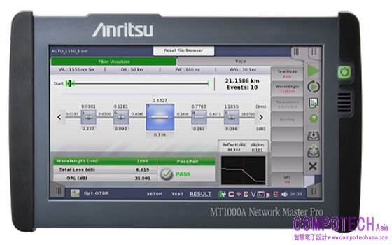 Anritsu 安立知已經透過其光傳輸測試儀 Network Master Pro MT1000A 和一系列 OTDR 模組選項 (如 10G 多速率模組 MU100010A),以支援傳輸品質測試,並提供 MU100020A / MU100021A / MU100022A 模組,以實現光纖品質測試。