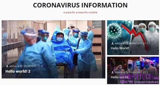 此外,該網站還提供有關新型冠狀病毒傳染的新聞和疫情地圖,但仔細觀察就會發現網站設計得很不專業,還留有像是「置入精美副標題」(以英文字樣呈現)等網頁操作說明和指示。