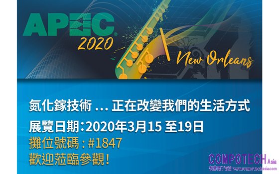 EPC團隊將於3月15至19日在美國紐奧良(New Orleans)舉行的APEC 2020展覽會上,進行11個關於氮化鎵(GaN)技術及應用的演講 (參考下方圖表)。此外,EPC展位(#1847)也會有多個終端客戶採用的最新氮化鎵場效應電晶體及IC產品亮相。