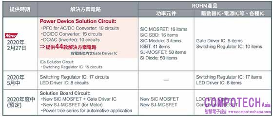 ●ROHM提供的電路解決方案和產品一覽表(截至發稿時)