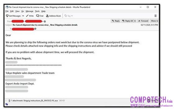 根據趨勢科技觀察,受到新冠肺炎疫情影響,全球與疫情相關的垃圾郵件大幅增加,部分駭客假冒官方組織的名義寄出釣魚郵件,有些則是提供「預防感染建議」、「冠狀病毒更新狀況」等,意圖將用戶導向釣魚網站,民眾稍不留意就可能被竊取帳號密碼,造成個資外洩、錢財損失!此外,趨勢科技也發現近期出現大量與「購物配送」有關的垃圾郵件,不肖份子聲稱貨物遞送因為疫情爆發而延期,並且還隨信貼心的提供附件檔案,內含新的配送時間資訊,殊不知卻是惡意軟體所偽裝的。趨勢科技研究人員偵測到以冠狀病毒「corona」命名的惡意軟體、惡意網域數量顯著增加,共發現7個含有「corona」檔案名稱的惡意軟體、以及22 個使用「corona」的惡意網域,顯示駭客正無所不用其極、如火如荼的利用這波疫情趁火打劫。