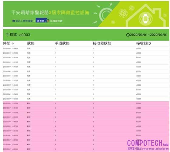 圖說:「居家隔離管制升級方案」可將檢疫或隔離者的感測紀錄,包含異常通報狀況、處理狀況等,皆統一上傳至後台雲端管理系統詳細紀錄。