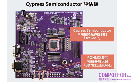 「BD783xxEFJ-M」已經搭載於賽普拉斯半導體公司的車用微控制器Traveo. Cluster MCU家族S6J3360系列的評估板中,可在接近實際運作環境下輕鬆進行評估。