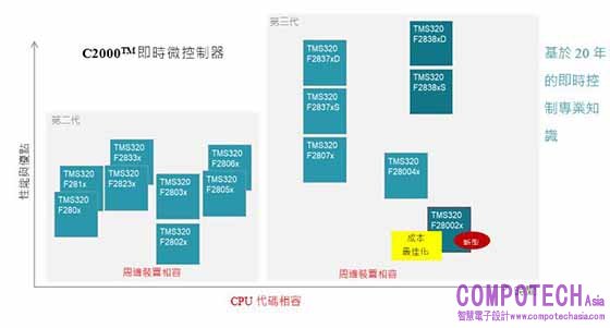 圖2:整體 C2000 產品組合的周邊裝置與代碼相容性