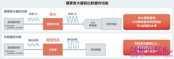 而比較器則用於判斷感測器輸出訊號之閾值,並輸出數位(High/Low)訊號。