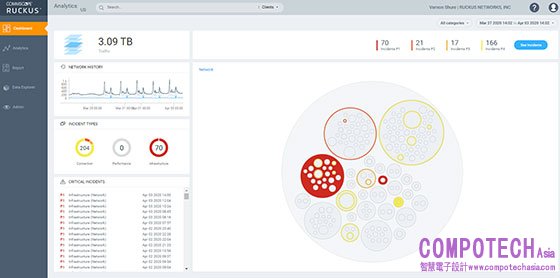 2020年5月26日--CommScope發表一款可提供網路情報與簡化服務穩定性的全新雲端服務 ─ RUCKUS Analytics,使擁有複雜網路的企業能主動改善其用戶體驗。這項新的服務建構在具專利技術的機器學習 (ML) 與人工智慧 (AI) 基礎上,能加速疑難排解、提供全方位的網路能見度,並自動判別影響服務的問題,其中最獨特的功能是能將問題依其嚴重性分類,讓代管服務供應商和企業IT團隊能優先解決最緊急的問題。