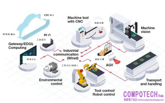 圖1:透過無線及有線連接(包括乙太網路)的現代工業設置