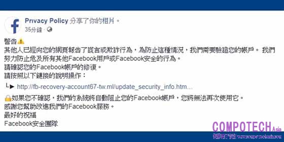 2020年6月3日--近期名人粉絲專頁遭駭頻傳,受害人數眾多,其中包含知名圍棋美少女黑嘉嘉也差點受騙。全球網路資安解決方案領導廠商趨勢科技 (東京證券交易所股票代碼:4704) 發現有不肖分子企圖偽裝成Facebook官方通知,不僅在Facebook開設幾可亂真的「Prıvacy Policy」粉絲專頁,甚至利用英文字母「i」和「ı」等微小差異,企圖混淆視聽、騙取粉絲團的帳密資訊。