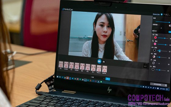 另外,搭配獨家的PerfectCam,讓使用者在會議中套用AR虛擬彩妝,讓與會的使用者透過電腦即能擁有好氣色。而藉由AI技術,能偵測人體,進行背景模糊或置換成其他背景圖片以確保隱私並增加專業感。