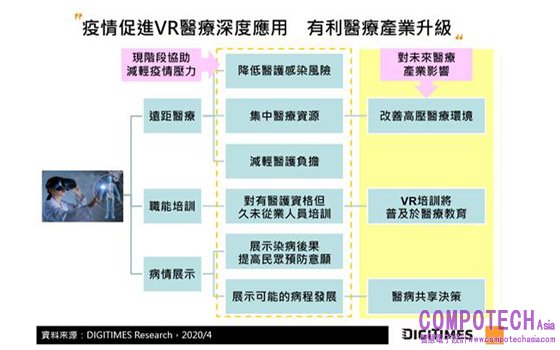 全球COVID-19(新冠肺炎)疫情爆發後,AR/VR頭戴裝置與相關應用遂成為民眾在家活動與工作的有效解決方案,使得短期內消費與商用市場對AR/VR頭戴裝置的需求加速提升,DIGITIMES Research分析師郭宜玲預期部分使用者疫情期間對AR/VR應用開始產生依賴,將拉抬2020年全球AR/VR頭戴裝置出貨量,年成長達29%。