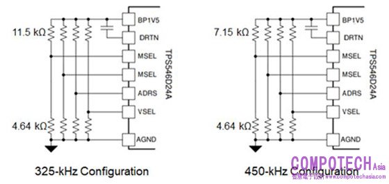 圖三:TPS546D24A 以兩種針腳可配置性架構改變切換頻率