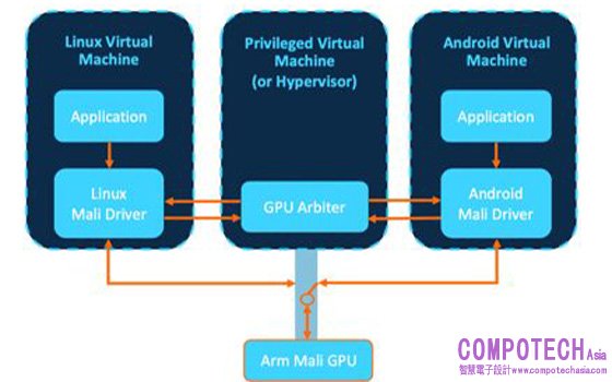 Arm 讓現有的 Mali DDK 具有全新的虛擬化能力。這讓在不同的虛擬機器中運行的多個圖像密集應用,程式軟體之間彼此得以分享 GPU 資源。此外,Arm 也相信在 IP與開發工具裡從頭開始內建安全性的重要,這一點,在 A 虛擬機器不能存取 B 虛擬機器資訊的 Mali DDK 虛擬化能力中相當明顯。Mali DDK 虛擬化的設計用意是要讓應用端完全看不到它,因此開發人員不必為了提供支援而修改他們的應用,因為一切都在驅動程式與系統軟體內發生。