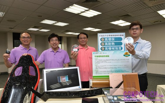 產業合作:目前已初步與CCL和PCB廠商完成產業場域驗證,符合IPC電子產業品質標準規範,並與複材廠商利用再生碳纖維成功製成汽車座椅產品。