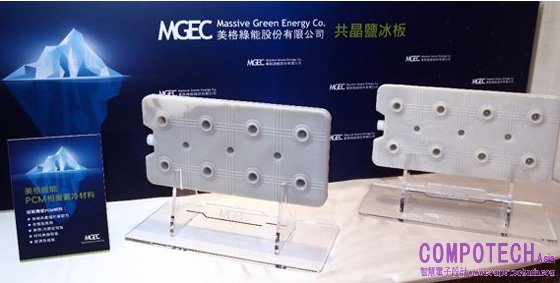 目前市面上的相變材料可分為無機PCM、有機PCM及複合PCM材料三類,而美格綠能「冰山計畫」所採用的獨家PCM材料則是獨家研發的無機共晶鹽化學配方,密度較高且能提供理想的溶/冰點,提高整體導熱/冷的穩定性之餘,也大大降低蓄冷效能損耗,是目前最具商用價值的PCM相變蓄能物質。