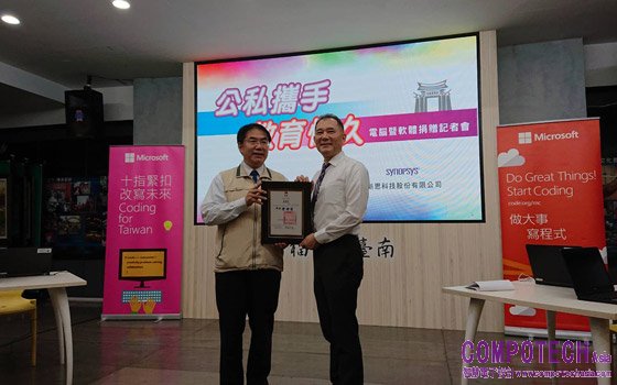 為紮根偏鄉程式教育與提升學子的資訊應用能力,新思科技台灣於七月十日捐贈85台更新汰舊但功能良好的筆電,搭配微軟公司的文書處理系統,給台南市教育局與愛自造者學習協會共同推薦的偏鄉受贈單位,希望透過公部門與私人企業的協力,提升偏鄉學童的資訊應用能力。