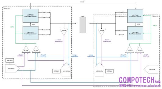 在眾多鋰離子電池需求市場上,為了滿足精確且全尺寸充放電電流控制準確度,針對50-A 、 100-A 和 200-A等應用,德州儀器模組化電池測試器參考設計特別組合了 50-A 和 100-A 電池測試設計,用來創建一個能夠達到 200-A 最大充放電水準的模組化版本。此解決方案的原理圖如圖 2 所示。