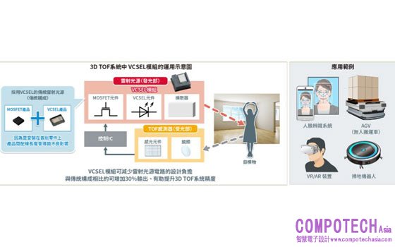 半導體製造商ROHM(總公司:日本京都市)研發出全新VCSEL*1模組技術,透過雷射光源中VCSEL的輸出功率 的提升,實現了空間識別和測距系統(TOF系統*2)的高精度化。
