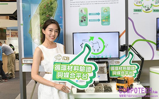 在「永續發展館」循環經濟專區,則有全臺地區首度曝光AI物料辨識技術,「電腦不只會撿花生,也能識別再利用資源!」工研院首創的「循環材料驗證與媒合平台」在經濟部工業局支持下,透過物質流分析與大數據技術精準評估、有效媒合物料,將負價值的廢棄物或工業副產品,翻轉為正價值循環物料。並結合AI人工智慧、物聯網及區塊鏈,進行智慧化物流運送管理,讓再利用資源可被完整的追蹤驗證,不論是移動動線、影像、重量等紀錄完全透明呈現於雲端並以區塊鏈保存。循環材料驗證與媒合平台讓資源物盡其用同時讓循環產業化、產業循環化,打通臺灣地區循環經濟的任督二脈,串聯臺灣地區資源利用與經濟發展,朝向永續前行。