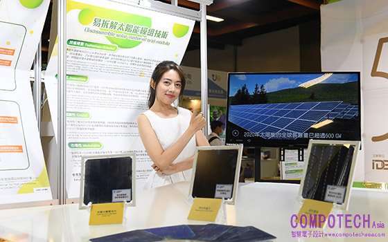 太陽能模組廢棄問題已成為近期國際環保與循環經濟重要議題,在經濟部技術處支持下,工研院新型的「易拆解太陽能模組技術」重新設計(Redesign)導入耐候、熱可塑模組材料,開發易拆解新型模組,並獲得專利,除增加原有發電效率,在汰役廢棄後,可完整分離玻璃與電池片,提取高純度銀、矽晶片與玻璃板,大幅提高太陽能循環利用價值,提升臺灣地區太陽能產業競爭力。