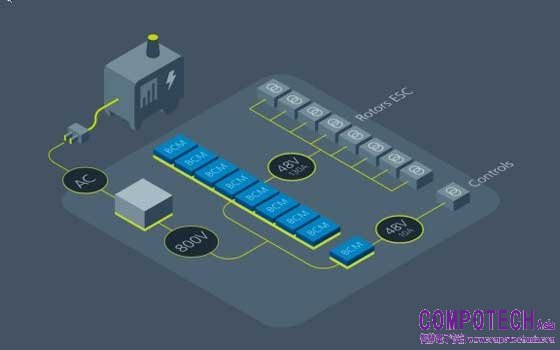 由8個Vicor高電壓BCM4414模組並聯排列運行,為DPI UMAR的8個獨立旋翼提供動力,能够在旋翼之間共享電源,增加冗餘