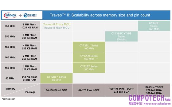 Traveo II 車身微控制器系列包含四款入門級產品和兩款高端產品,每款產品均具有不同的記憶體和引腳規格。第一款入門級產品將在 2020 年 10 月開始量產,之後其他產品也將陸續推出,直到2021 年第二季度整個產品系列將全面上市。2021 年 Traveo II系列還將進一步擴展,全新的嵌入式圖形微控制器將強化英飛凌在儀表、座艙和數位顯示應用領域的佈局。