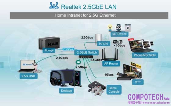 瑞昱今年推出第二代2.5GbE乙太網路解決方案,將晶片體積縮小、節能省電、與各廠牌相容性高仍能穩定傳輸及獨家調節頻寬軟體Dragon等產品特色,應用在生活中各種網路相關設備,如:路由器、機上盒、電腦、筆電、網路硬碟、印表機及基地台等,將區域網路環境單、雙向傳輸規格提升至2.5GbE。輕鬆升級高速網路設備,讓大眾皆能享受快速、穩定網路品質是瑞昱的核心價值,不斷的精進、開發產品,相關軟、硬體應用也日趨完整,打造瑞昱生態系,完成「未來生活,瑞昱無所不在」的願景。