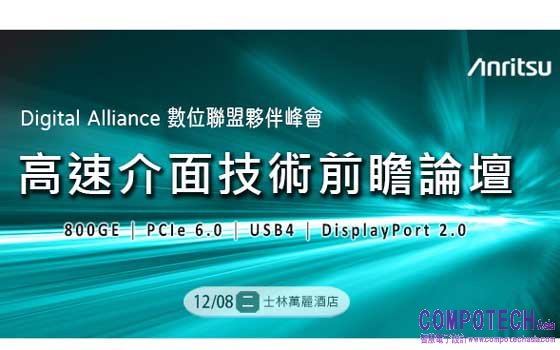 【Digital Alliance 數位聯盟夥伴峰會 – 2020 高速介面技術前瞻論壇】將於 2020 年 12 月 08 日於台北士林萬麗酒店舉行,來自數位領域優秀的業界菁英雲集分享最新技術趨勢,深入淺出介紹高速介面協定規範與測試架構,邀請您一同體驗高效能的高速介面量測解決方案。