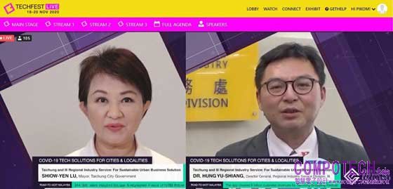 圖說:11月19日舉辦2020全球ICT卓越獎線上頒獎典禮,臺中市盧秀燕市長(左)與資策會創生處洪毓祥處長發表獲獎感言。