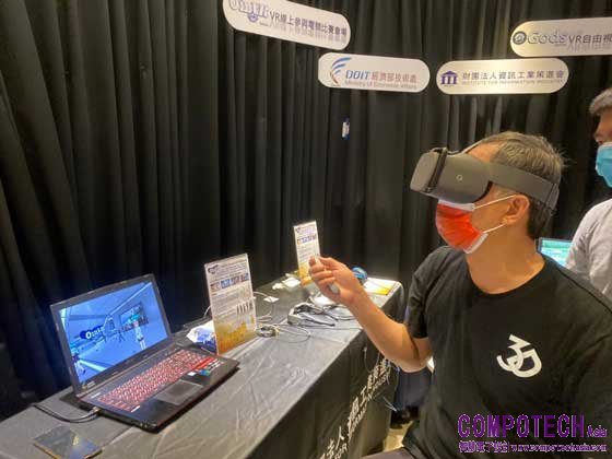 圖說:「挑戰者盃」亞洲電競賽車錦標賽—台灣站複賽現場,民眾體驗「OinVR技術」,在3D虛擬空間中化身虛擬角色,除了觀賞比賽之外,還能夠與虛擬空間中的朋友互動。