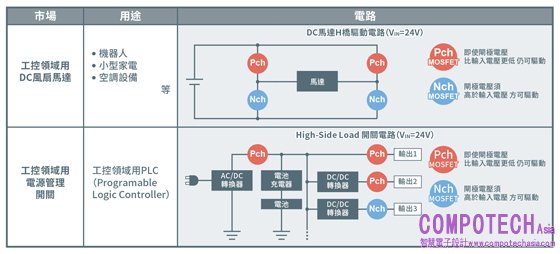 本次推出的新產品包括耐壓-40V和-60V在內共24款產品,適用於FA裝置、機器人以及空調裝置等應用。未來將繼續擴充封裝陣容,來支援工控領域之外的廣泛應用,同時也計畫開始研發車電級產品。此外採用全新結構的新世代製程不僅可應用在Pch MOSFET產品上,還可應用在Nch MOSFET產品上,並擴大其產品線,減少更多應用產品的設計工時,並進一步提高品可靠性。