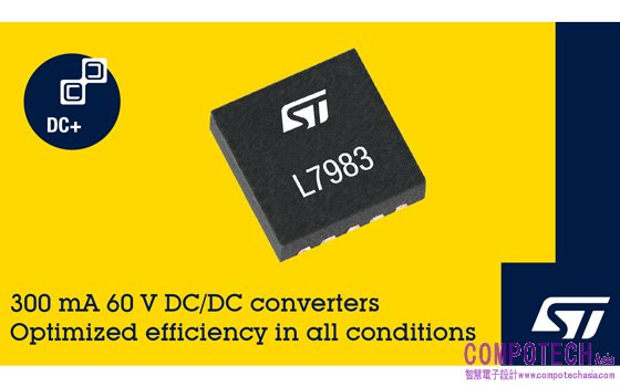 2021年1月8日-- 橫跨多重電子應用領域、全球領先的半導體供應商意法半導體(STMicroelectronics,簡稱ST;紐約證券交易所代碼:STM)所推出之L7983是一款高精密的3V-60V、300mA同步DC/DC降壓功率轉換器,具有彈性動態模式選擇,可滿足雜訊敏感應用的要求,並在輕載時能夠讓效能最大化。