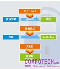 通常,以FAN和IoT裝置進行通訊的資料都已經過加密,由軟體進行加密處理的負擔極重、且工作量十分龐大。而本款新產品配備了支援AES等不同加密模式的硬體引擎,搭配非常適合封包處理的DMA控制器,能夠大幅減輕CPU的負擔,與傳統產品相比CPU負擔僅為1/2000。另外還新配備了雜湊函式(SHA-224/SHA-256)和隨機性更高的真亂數產生器(TRNG※4)。這些優勢不僅可以進一步降低系統功耗,還可以確保更安全、更可靠的通訊。