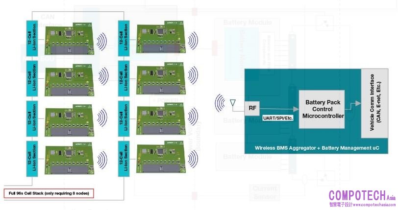 設計製作出電池的連接以及有線解決方案中的隔離相當困難,而且所費不貲。萬一發生意外事件,電線也可能會斷裂,因此需要更換整個電池組。這些問題導致汽車製造商和BMS解決方案提供商尋求無線通訊解決方案。