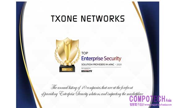 2021年2月3日--全球工業物聯網資安領導廠商TXOne Networks (睿控網安) 宣布榮獲前瞻權威企業科技領導期刊《Enterprise Security Magazine》評選為2020年亞太區10大最佳企業資安解決方案提供者註1全力幫助工控資安數位轉型。TXOne Networks是由全球網路資安解決方案領導廠商趨勢科技與工業通訊及網路領導廠商四零四科技於2018年聯合成立,致力開發工業物聯網資安防護應用,匯聚業界頂尖技術能量,於短短兩年獲得此殊榮,顯示TXOne Networks在工控資安領域的卓越的成果,已深獲業界及企業客戶的肯定。