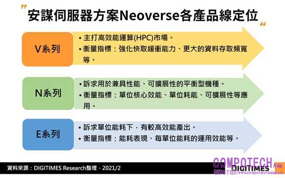 安謀(Arm)以邊緣運算、行動裝置市場領先基礎,積極拓展伺服器方案,從傳統訴求低能耗往高效能運算(High Performance Computing;HPC)方向發展。而在雲端業者如亞馬遜(Amazon)、微軟(Microsoft),以及晶片商如Marvell、Ampere等採用下,有助於安謀在大型雲端資料中心及HPC應用拓展市場,漸往全球伺服器應用市場1成佔有率邁進。
