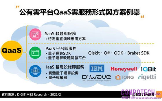 DIGITIMES Research分析師陳辰妃表示,目前公有雲平台QaaS大多透過引入第三方廠商所提供的量子電腦來提供基礎運算設施,並整合既有軟體開發環境與量子運算軟體資源,藉此吸引開發者使用並建立自有生態系。可預期的是,因公有雲平台匯集完整運算資源,未來將成量子運算與傳統電腦運算融合的關鍵場域。