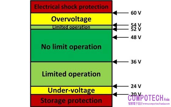 圖 2:ISO 21780 中指定的 48-V 系統電壓位準