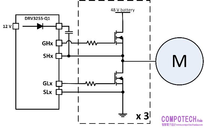 圖 3:典型 48-V 高功率馬達驅動器方塊圖