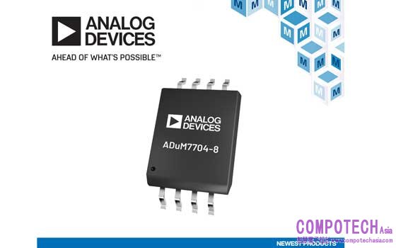 2021年3月18日--提供種類最齊全的半導體與電子元件、專注於新產品導入的授權代理商貿澤電子 (Mouser Electronics) 即日起供貨Analog Devices的ADuM7704 Sigma-Delta調變器。這款高效能的二階調變器能將類比輸入訊號轉換為高速、單位元的資料串流,且晶片內建了採用Analog Devices iCoupler®技術的數位隔離功能。