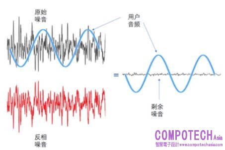 傳統的TWS無線藍牙耳機傳輸方式為主副耳轉發模式,即先從手機傳輸資料流到主耳機,然後主副耳同步。這種傳輸方式需要佔用主耳機兩倍的帶寬,並且電波需要穿透人體,會帶來較大的干擾。本款方案採用共享模式,手機將資料流同時傳輸到左耳和右耳帶,降低了主耳至副耳的電波干擾,帶來了更好的音質和抗干擾性,並且通過藍牙5.0實現了更加穩定的連接。本款方案中的ANC主動降噪功能是從軍用技術向民用的轉化,通過降噪系統產生與外界噪音相等的反向聲波將噪音中和,從而實現降噪的效果。