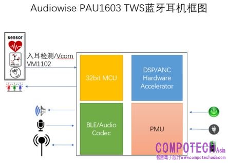 圖示4-大聯大品佳推出基於Audiowise PAU1603的TWS耳機方案方塊圖
