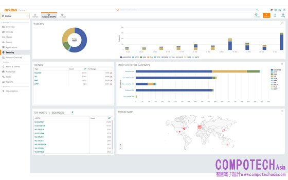 圖說:Aruba Central Security操作介面,現在可收集來自Aruba EdgeConnect的威脅來源數據。做為Aruba ESP的核心,Aruba Central為單一視窗的管理平台,可用於跨區事件管理,實現統一的基礎架構。