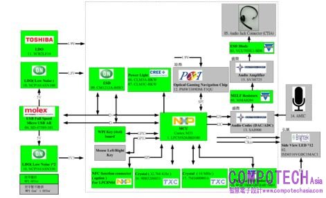 圖示2-大聯大世平推出基於NXP Cortex M33 LPC55S26的電腦外設參考設計的方案方塊圖