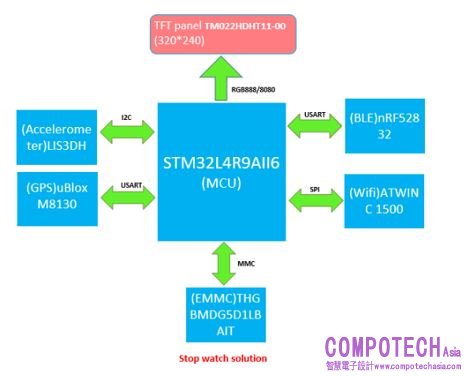 圖示2-大聯大友尚推出基於ST STM32 Cortex-M4(STM32F4 or L4)碼表方案的展示版圖(二)