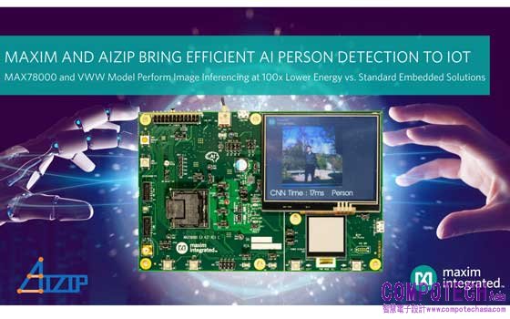 2021年4月22日--Maxim Integrated Products, Inc (NASDAQ: MXIM)與專注於物聯網(IoT)領域人工智慧(AI)技術開發的Aizip公司達成合作,Maxim Integrated的MAX78000神經網路控制器採用Aizip的視覺喚醒詞(VWW)模型在影像中偵測人員,將每次運算功耗降至0.7 毫焦(mJ)。這種功耗水準比傳統的軟體方案降低100倍,是目前市場上最經濟、最高效的IoT人員識別方案。低功耗網路為需要人員檢測的電池供電IoT系統提供更長的執行時間,比如:大樓能源管理、智慧安防攝影鏡頭等。