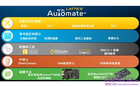 • 易於使用的軟體設計方法——Automate支援萊迪思Propel™,可使用嵌入式RISC-V處理器進行軟體和硬體協同處理,簡化工業自動化系統的開發。